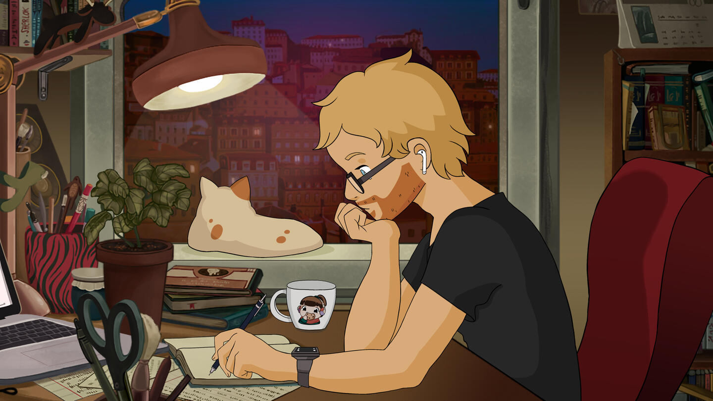 INT. OFFICE - NIGHTA sleep deprived writer/video editor jots down whatever amusing, thought provoking, or otherwise titillating snippets of news, articles, artwork, video clips and other various sundries he and the internet has to offer.